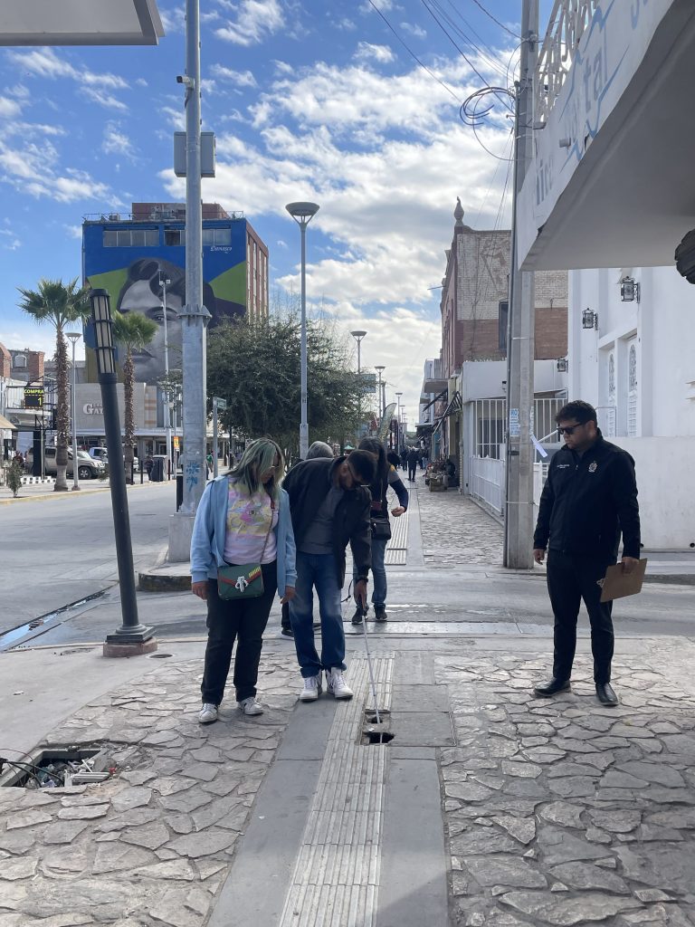 Ciudad Juárez, Chihuahua.– 4 de diciembre 2025, la Comisión de Movilidad llevó a cabo un recorrido por la avenida Benito Juárez, con el objetivo de observar presencialmente el deterioro y otras afectaciones en las guías podotáctiles y las diversas obstrucciones en las banquetas de la zona centro.